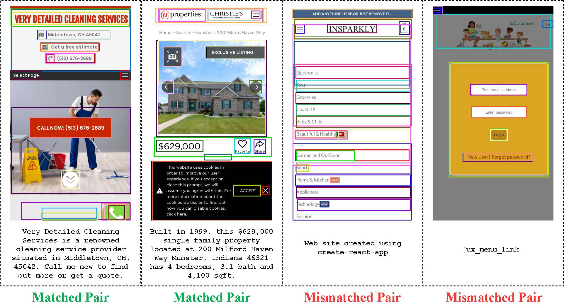 We develop a new dataset named Noise of Web (NoW) for NCL. It contains 100K image-text pairs consisting of website images and multilingual website meta-descriptions (98,000 pairs for training, 1,000 for validation, and 1,000 for testing). NoW has two main characteristics: without human annotations and the noisy pairs are naturally captured. The source image data of NoW is obtained by taking screenshots when accessing web pages on mobile user interface (MUI) with 720 X 1280 resolution, and we parse the meta-description field in the HTML source code as the captions. In NCR (predecessor of NCL), each image in all datasets were preprocessed using Faster-RCNN detector provided by Bottom-up Attention Model to generate 36 region proposals, and each proposal was encoded as a 2048-dimensional feature. Thus, following NCR, we release our the features instead of raw images for fair comparison. However, we can not just use detection methods like Faster-RCNN to extract image features since it is trained on real-world animals and objects on MS-COCO. To tackle this, we adapt APT as the detection model since it is trained on MUI data. Then, we capture the 768-dimensional features of top 36 objects for one image. Due to the automated and non-human curated data collection process, the noise in NoW is highly authentic and intrinsic. The estimated noise ratio of this dataset is nearly 70%.