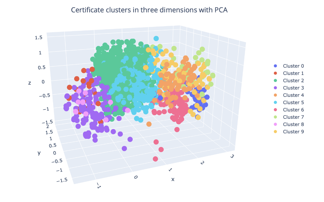 Venafi is excited to release of the Machine Identity Spectra large dataset. This collection of data contains extracted features from 19m+ certificates discovered over HTTPS (port 443) on the public internet between July 20 and July 26, 2023. The features are a combination of X.509 certificate features, RFC5280 compliance checks, and other attributes intended to be used for clustering, features analysis, and a base for supervised learning tasks (labels not included). Some rows may contain nan values as well and as such could require additional pre-processing for certain tasks.