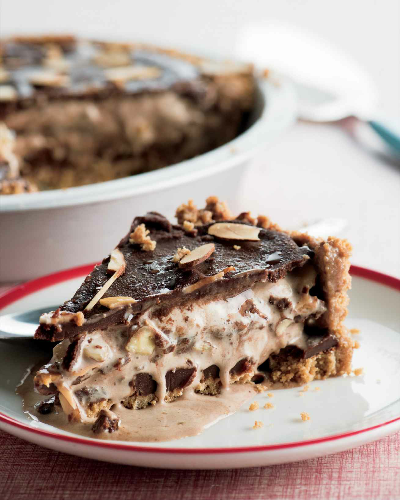 Frozen mud pie, made with an avalanche of ice-cream topped with chocolate fudge.